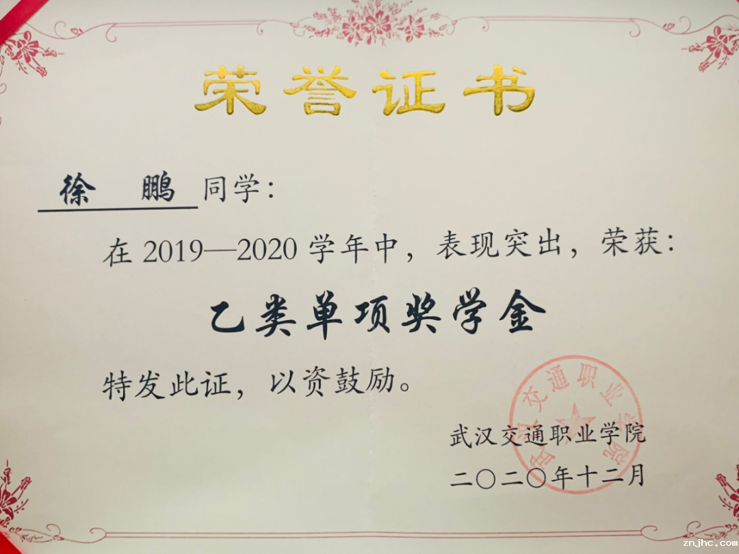 徐鹏说:“在高中时没有好好学习,在学习上没有取得优异的成绩,我也曾一度失落过,但是我不愿就此堕落,大学对我来说是个新起点、新征程,我还有好长的路要继续走下去”。于是,来到大学,他认识到学习的重要性,“大才非学不成”,时间稍纵即逝,现在是学习知识、不断上进的黄金年龄,他以学习为梯,积极主动,向书本学习,刻苦钻研,不断丰富自己的知识体系。