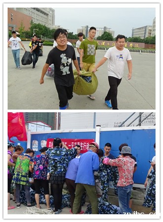 29日下午,机电工程学院青年志愿者协会的志愿者们将前期在学校回收的军训服集中运送到附近的工地进行义卖。“一元一件,各位叔叔阿姨都过来看一看啊!”,活动现场,面对一元一件的军训服,农民工朋友们纷纷挑选起来,不到半小时,所有军训服被选购完毕。