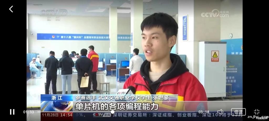 新闻网讯(记者 谢芳)11月28日,我校师生刘魏晋、张世豪在十八届“振兴杯”全国青年职业技能大赛现场接受中央电视台13频道新闻直播间采访报道。